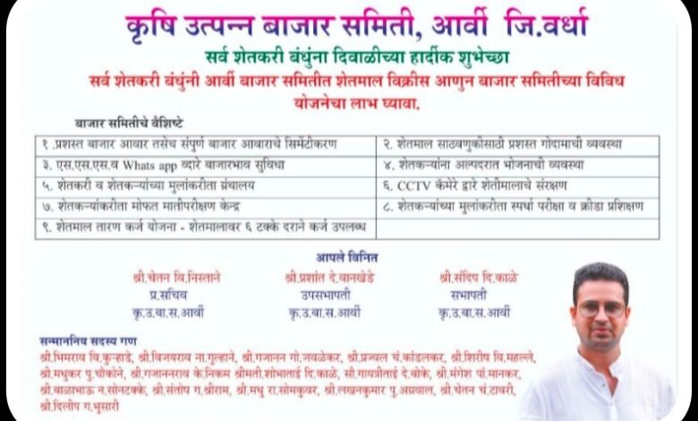 कृषि उत्पन्न बाजार समिती, आर्वी जि. वर्धा सर्व शेतकरी बंधुंना दिवाळीच्या हार्दीक शुभेच्छा